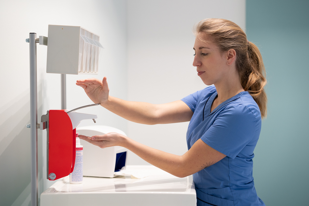 All diese Bausteine nutzt das Evangelische Krankenhaus Lippstadt (EvK) in seinem umfassenden Hygienekonzept und nimmt damit in puncto Infektionsprävention eine Vorreiterrolle ein. Gerade in den hygienesensiblen Bereichen der Klinik trägt das Konzept aktiv zur nachhaltigen Verbesserung der Händehygiene bei.