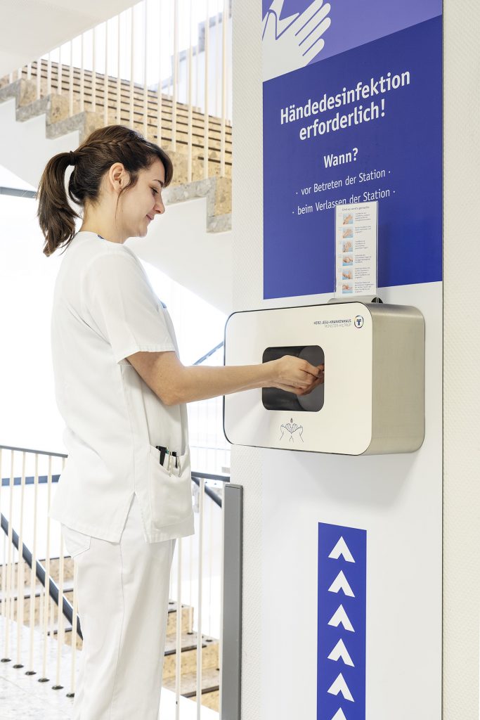 Nicht zuletzt durch die Corona-Situation wird deutlich, wie wichtig eine funktionierende Hygiene-Infrastruktur im Krankenhaus ist, zu der in erster Linie ein gut ausgebildetes Personal aber auch organisatorische und bauliche Aspekte gehören – wie zum Beispiel die Ausstattung mit Desinfektionsmittelspendern. Die Hygienefachkraft spielt im Hygieneteam, dem zusätzlich ein Krankenhaushygieniker und hygienebeauftragte Ärzte angehören, eine wichtige Rolle, um den Patientenschutz zu sichern.