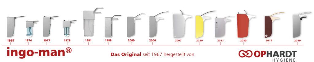 Der Urtyp des ingo-man® wurde im Jahr 1967 von Hermann Ophardt präsentiert und erlangte innerhalb kurzer Zeit große Popularität. Dazu trug vor allem bei, dass der Eurospender ein gravierendes Problem löste. In den 1960er Jahren fluteten immer mehr alkoholbasierte Händedesinfektionsmittel den Markt. Das Pflegepersonal und die Ärzte in den Krankenhäusern merkten jedoch schnell, dass das Desinfektionsmittel häufiger auf den Fußböden landete als auf ihren Händen. Die Pumpendichtungen der damaligen Desinfektionsspender hielten den neuen Mitteln schlichtweg nicht stand. Bis zu jenem Jahr 1967 und Ophardts Erfindung des ingo-man®.