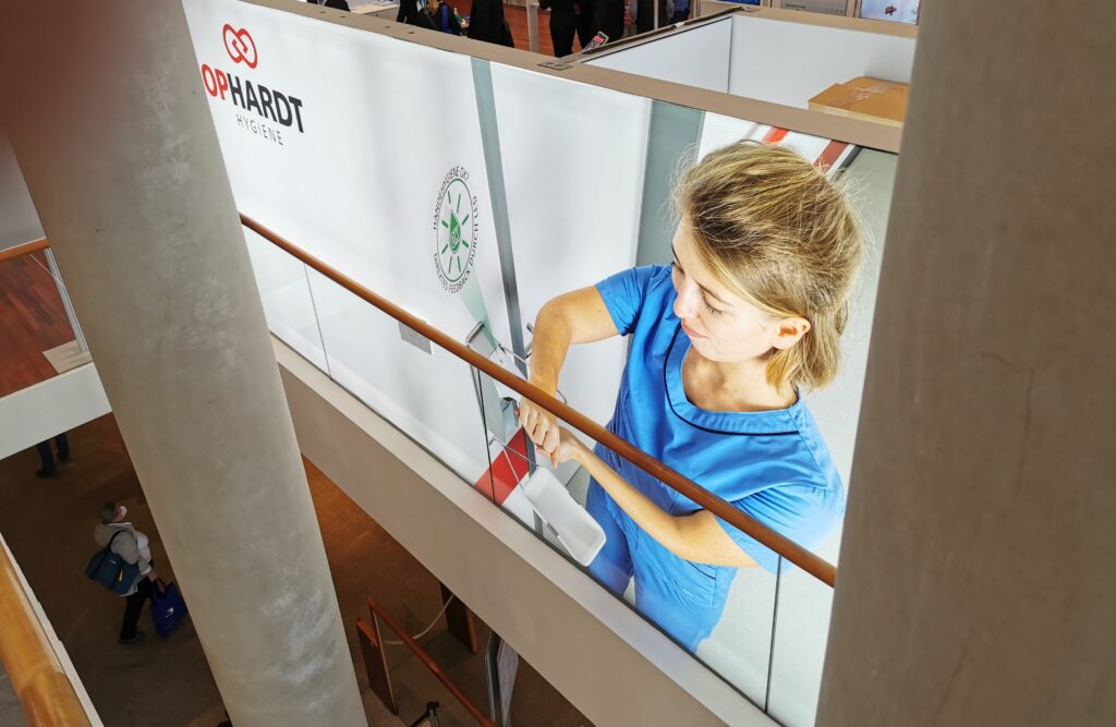 Kein Vorbeikommen gab es an den zahlreichen und optisch ansprechenden PRAESIDIO® Desinfektionsmittelspendern, die auf dem gesamten Kongressgelände von OPHARDT gestellt wurden und für den nötigen Infektionsschutz sorgten.