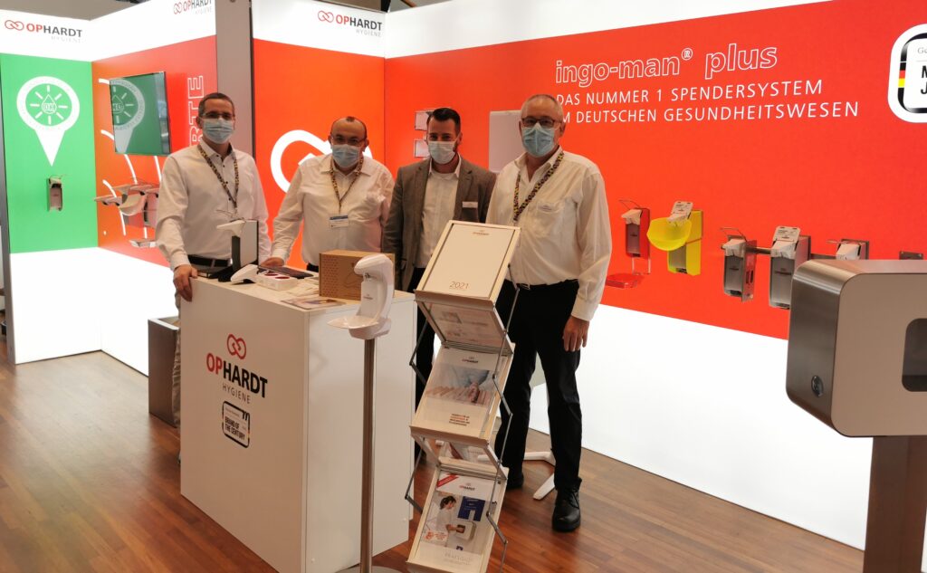 OPHARDT Hygiene präsentierte mit dem ingo-man® plus zudem seine Flaggschiff-Serie, die dank seiner Vielfalt und Flexibilität quasi von allen Hygienefachkräften geliebt und geschätzt wird. Die recycelbaren DHP Einwegpumpen als Problemlöser für die lästige Aufbereitung von Desinfektions- und Seifenspendern im Krankenhaus überzeugte die Fachbesucher auf Anhieb.