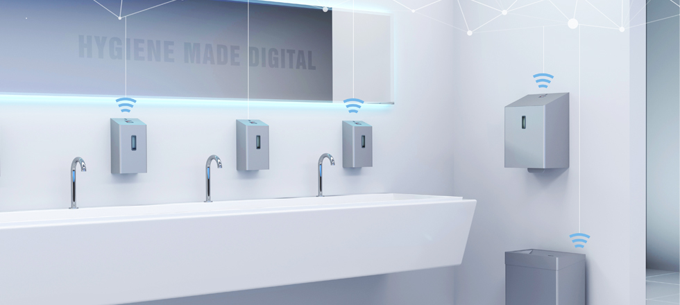 Die vernetzten Hygienespender übermitteln ihre Nutzungsdaten an eine webbasierte Software, über die Füllstände gemessen, Nachfüllzyklen optimiert und die Verfügbarkeit von Füllgütern nachhaltig gesteigert werden können. Diese Vorteile kombiniert mit der intuitiven, automatischen Steuerung des Personals über eine mobile Anwendung (Android, iOS), sorgen für zufriedene Waschraumbesucher auf der einen Seite und signifikante Einsparpotentiale auf der anderen Seite.