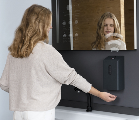 Mit der intelligenten Waschraum-Serie SanTRAL® Plus beheben Sie genau dieses Problem im Handumdrehen: Die smarten Spender, Abfalleimer, Toilettenpapierhalter & Co. zeigen per App Füllstand und weitere hilfreiche Nutzungsdaten an.