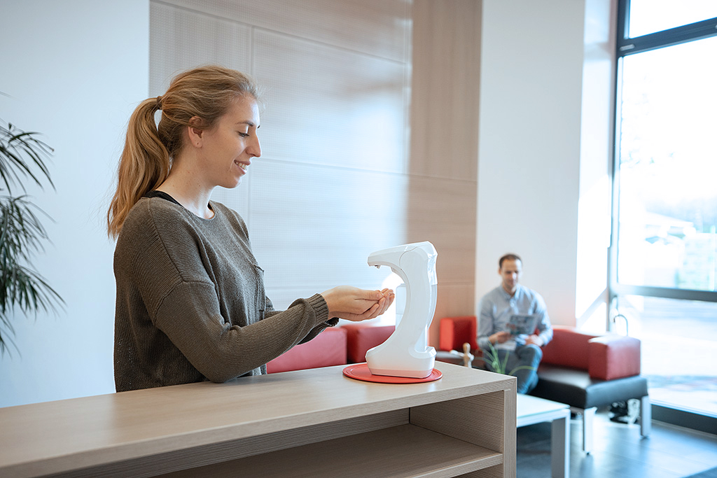 Daher ist eine gute Händehygiene unerlässlich: Achten Sie darauf, dass Ihren Mitarbeitenden und Besuchenden stets saubere und gut ausgestattete Möglichkeiten zur Händereinigung zur Verfügung stehen und Händedesinfektionsmittel vorhanden ist. Außerdem können Sie dieses Verhalten auch fördern: Beschilderungen in Waschbeckennähe, in Waschräumen und in hochfrequentierten Bereichen regen Mitarbeiter zum Händewaschen an. Wie eine wissenschaftliche Studie gezeigt hat, sind Papierhandtücher deutlich hygienischer als Lufttrockner. So sollen die Papierhandtuchspender so montiert sein, dass sie gut zu erreichen sind.